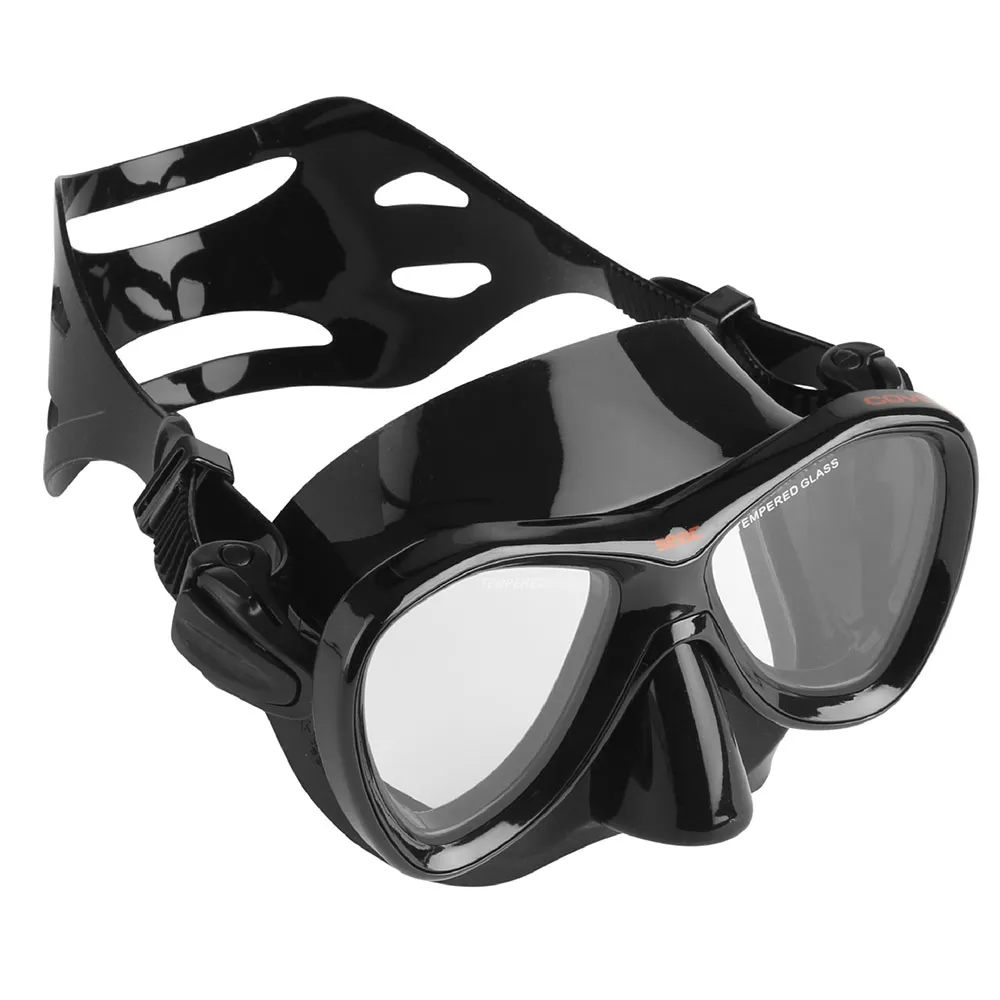 Seac Cove, dive mask for scuba diving, spearfishing and snorkeling, hypoallergenic black silicone.