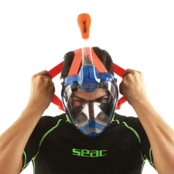 Magica is the full-face snorkeling mask designed and manufactured by SEAC®. It allows you to explore the world below the waters surface, breathing naturally through your nose and mouth. Exhaled air is vented through an exclusive patented system located in the front of the mask to make exhaling effortless and eliminate the noise that purge valves make. A separated channeling system for inhaled and exhaled air prevents the lens from fogging. The snorkel features a Dry Top to prevent water from entering the tube.